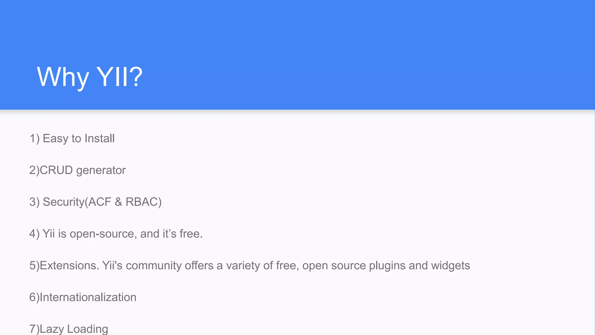 Yii is a high-performance PHP framework that is easy to install, offers security features like access control and role-based access control, and supports internationalization and lazy loading for improved performance. It uses the model-view-controller pattern and allows automatic code generation via Gii. Yii is open-source and free to use.