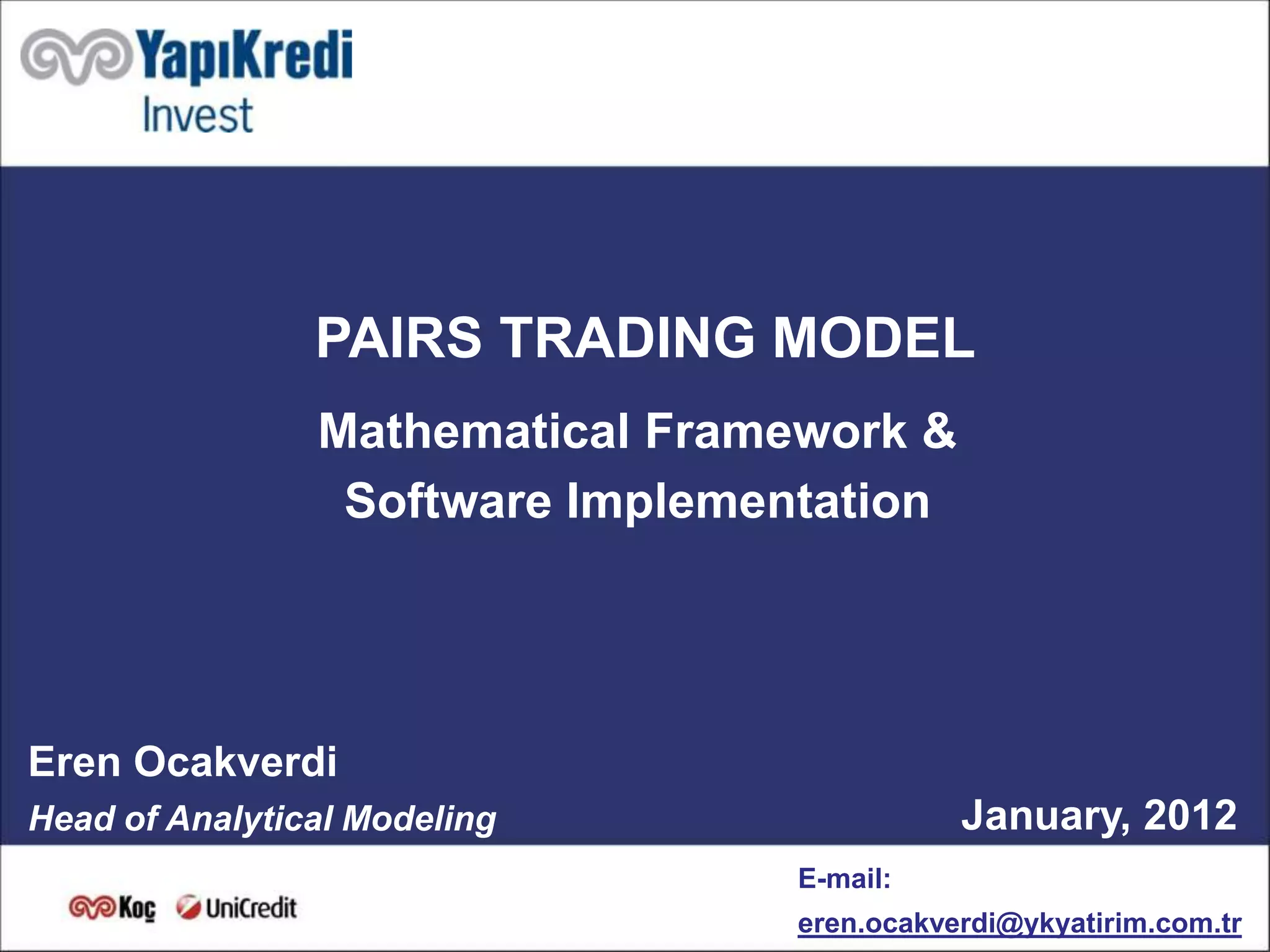 1. It outlines four mathematical methods - normalized differences, cointegration, stochastic spread, and time varying mean reversion - to analyze pair spreads and generate trading signals.