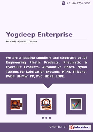 Yogdeep Enterprise, established in 1978 and based in Mumbai, is a leading supplier and exporter of engineering plastic products, pneumatic and hydraulic products, and various types of hoses. The company emphasizes precision engineering and compliance with international standards, serving markets including the Indian subcontinent and East Asia. With a strong focus on innovation and customization, Yogdeep Enterprise offers a wide range of products, ensuring efficient and durable solutions for diverse industrial applications.