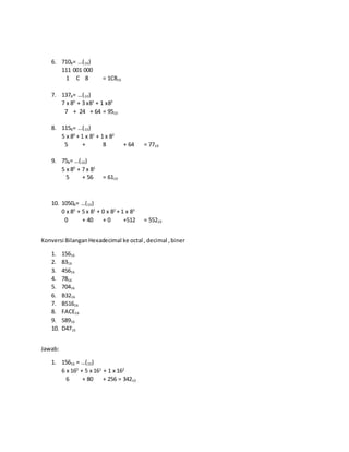 Konversi BilanganOctal ke decimal ,biner,hexa