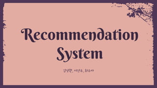 추천시스템은 일반적으로유저가 높은 평가를 준 아이템과 비슷한 아이템들을 추천해준다.
