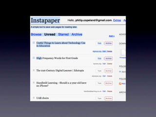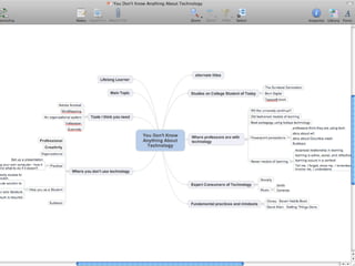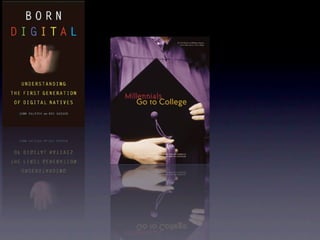 The document discusses the divide between students and professors regarding technology, highlighting that today's students are more tech-savvy and often question traditional teaching methods. It argues for a shift away from passive learning towards a more creative and engaged educational approach, emphasizing the need for professors to adapt to new models of learning. The author also notes the importance of lifelong learning and using technology as a tool for personal growth rather than just entertainment.