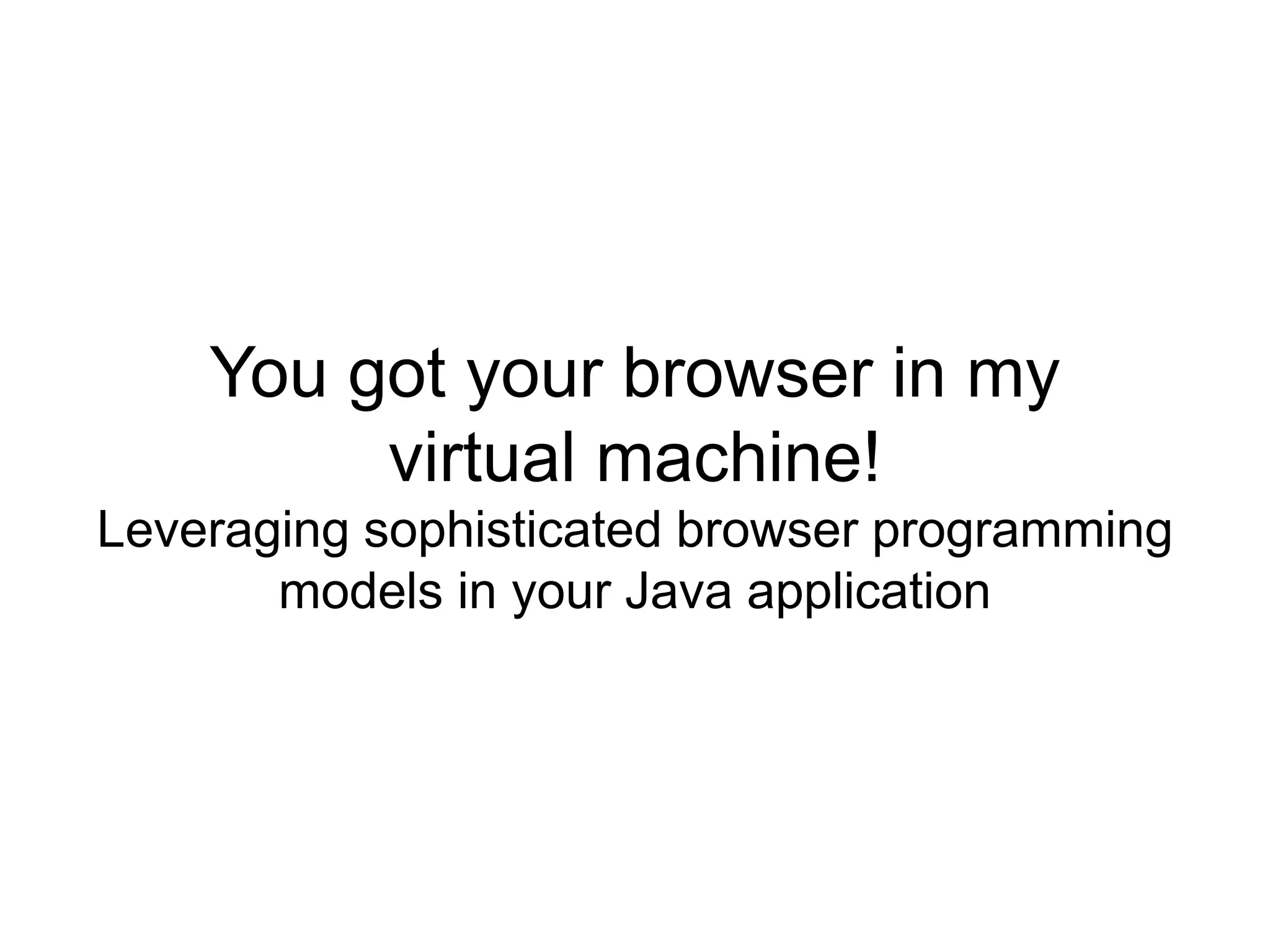 This document provides an overview of WebExtensions, isomorphic applications, and JavaScript frameworks like React. It discusses how WebExtensions allow add-ons to be built for browsers using JavaScript and HTML to monitor user activity, inspect page contents, and add new controls. Isomorphic applications allow the same code to run on both client and server. React uses immutable state and a virtual DOM. Redux uses a single immutable state tree updated via reducers. The FilterBubbler analyzes a user's browsing history using classifiers to visualize their "filter bubble".