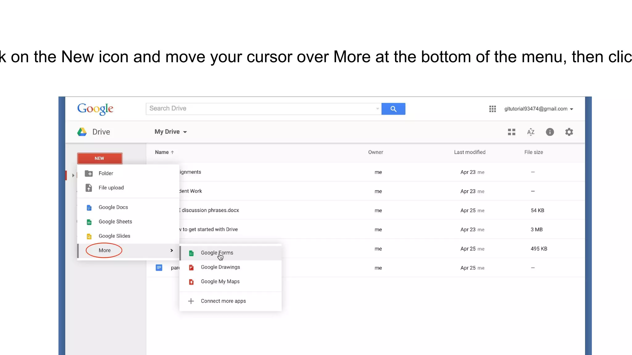 - The document provides instructions for creating and sharing a Google Form in 3 steps: create a new form, add different types of questions, and share the form by email.