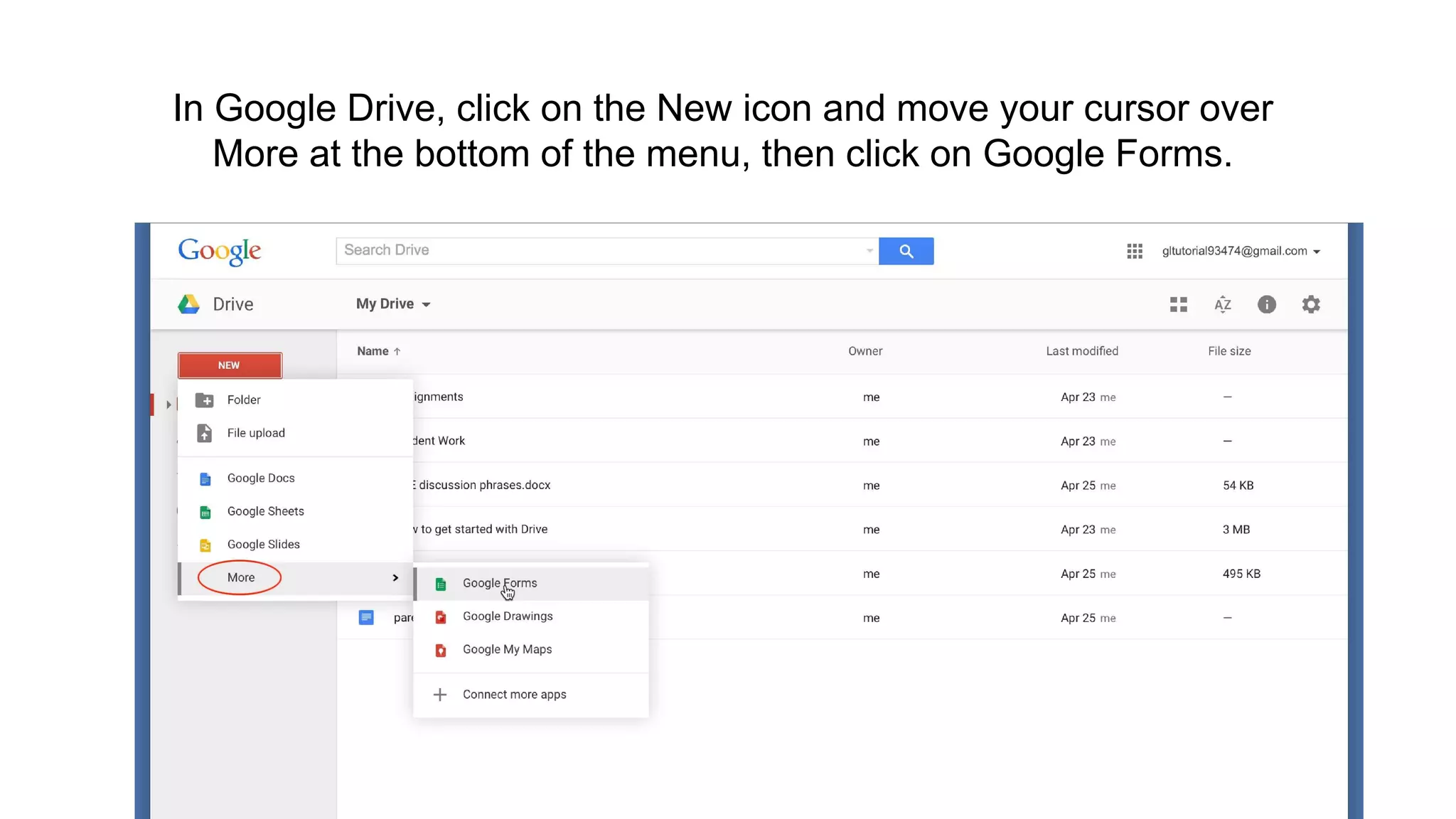 1) Create a new Google Form in Google Drive and add different types of questions.