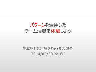 第63回名古屋アジャイル勉強会「パターンを活用したチーム活動を体験しよう」のワークショップ資料。 http://blogs.yahoo.co.jp/nagoya_agile_study_group/38476993.html