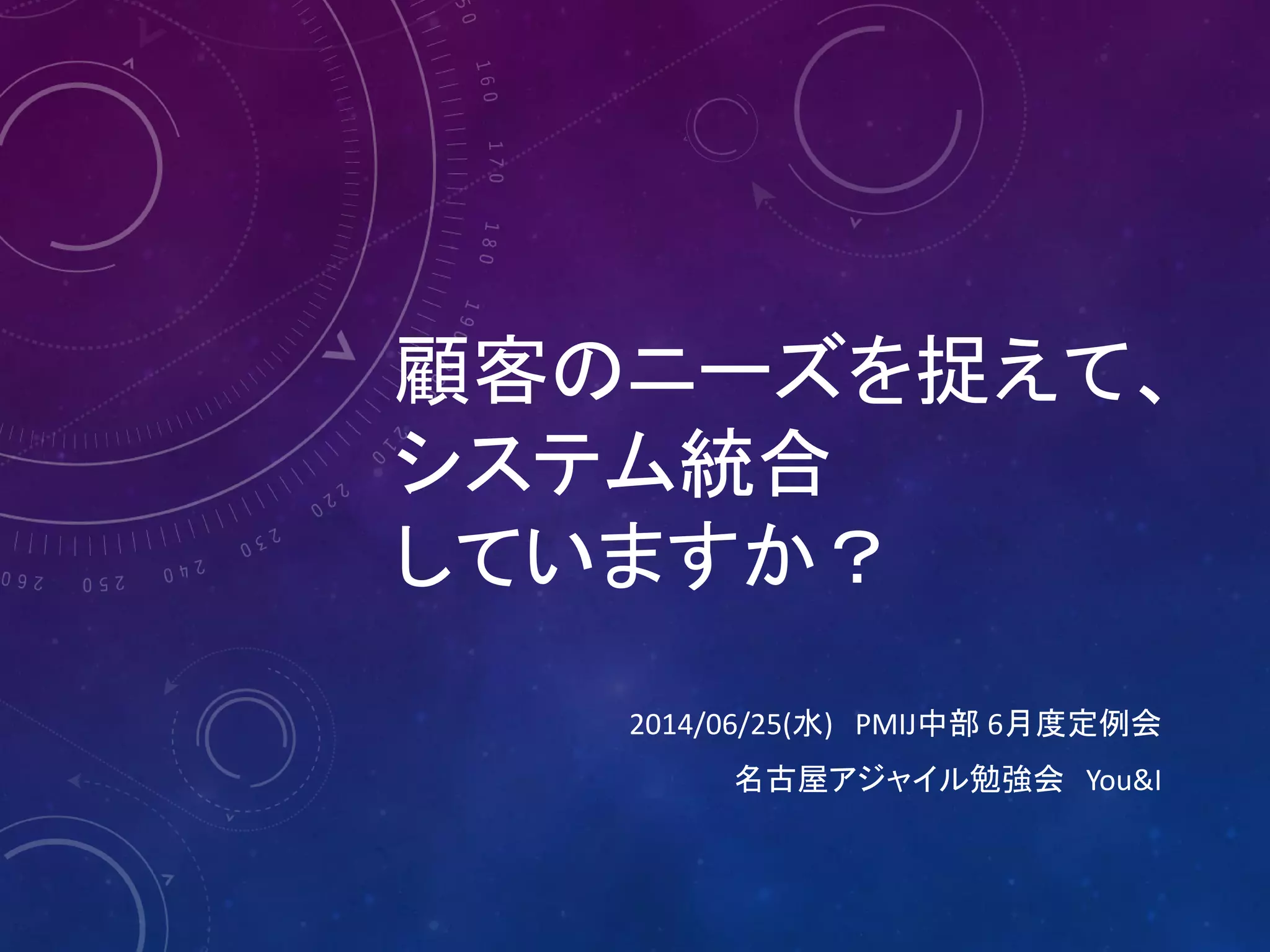 PMIJ中部 6月度定例会 「顧客のニーズを捉えて、システム統合していますか?」のワークショップ資料 http://kokucheese.com/event/index/184534/