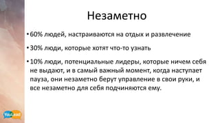 Роман Дусенко обсуждает современное лидерство, подчеркивая важность личной ответственности, управления талантами и возможности, возникающие в кризисных ситуациях. Он акцентирует внимание на необходимости высоких скоростей изменений и постоянном развитии, а также на роли лидера как образца для подражания. Каждый человек способен быть лидером, но для этого нужно верить в себя и осознавать свои ценности.