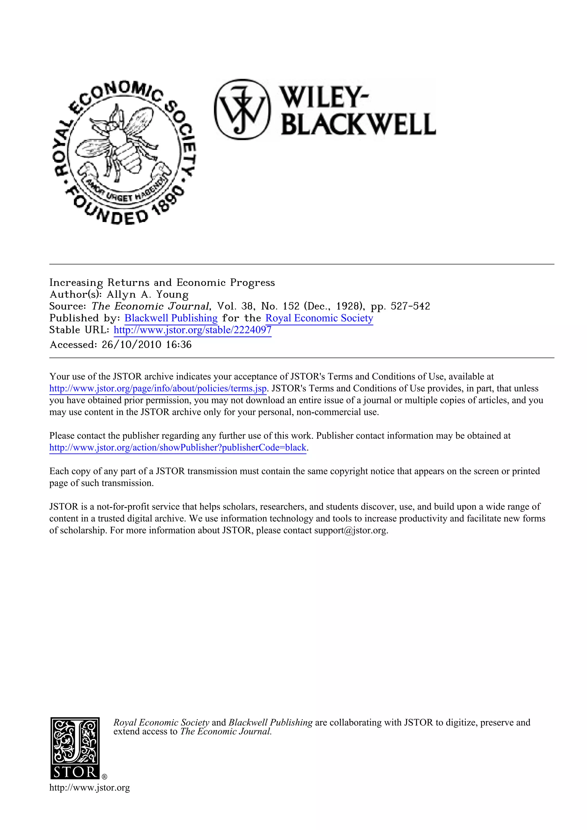 This document discusses the concept of increasing returns and economic progress. It begins by noting that while economists have developed complex models to analyze industries with increasing returns, these models can obscure more general aspects of the phenomena. It argues that the growth of indirect or roundabout production methods, enabled by greater specialization and division of labor, is a key source of increasing returns. However, the extent of these returns depends on the size of the market, as larger markets allow for greater specialization and use of capital-intensive production methods. While rationalization may improve efficiency, the fundamental driver of economic progress is the expansion of markets that comes from overall economic growth and development.