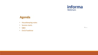 The document outlines a webinar about learning needs assessment led by Seema Nagrath Menon, an expert in learning and development. It addresses topics such as the definition of needs assessment, the process of gathering data to identify performer requirements, and strategies for optimizing learning conditions. Additionally, it emphasizes the importance of understanding organizational goals and performance gaps to develop effective training solutions.
