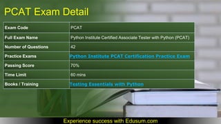 Start here--- https://bit.ly/43pn5n5 ---Get complete detail on PCAT exam guide to crack Testing. You can collect all information on PCAT tutorial, practice test, books, study material, exam questions, and syllabus. Firm your knowledge on Testing and get ready to crack PCAT certification. Explore all information on PCAT exam with number of questions, passing percentage and time duration to complete test.