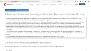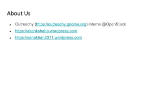 The document provides a guide for contributing to OpenStack, emphasizing the benefits of joining the contributor community and step-by-step instructions on how to get involved. It outlines the necessary account registrations, the process of setting up the development environment, and the steps for selecting and fixing bugs. Additional resources and contact information for the authors are also included.