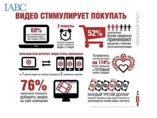 Семинар "Как покорить YouTube" охватывает важность видеомаркетинга и его влияние на продажи и вовлеченность пользователей. Документ содержит стратегические рекомендации для брендов по созданию и оптимизации видеоконтента, а также факторы, влияющие на ранжирование видео на платформе. Важное внимание уделяется необходимости регулярного видеомаркетинга как стратегического комплекса действий.