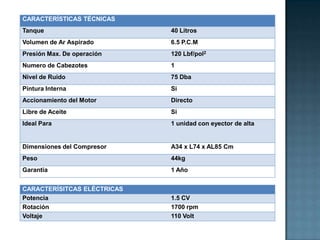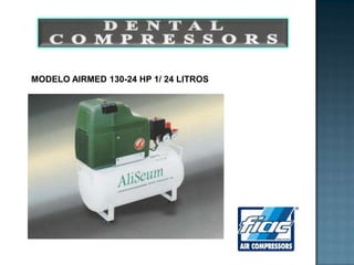 This document provides information about dental compressor models from FIAC DENTAL ITALY, including the AIRMED 130-24 HP 1/24 liters, AIRMED 180-HP 1.5/30 liters, and AIRMED 244-HP 2/50 liters. It also lists the factory address, phone numbers, and email for FIAC DENTAL ITALY located at calle 9 No. 27-06.