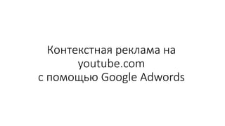 Документ описывает преимущества контекстной рекламы на YouTube через Google AdWords, включая статистику аудитории и целевые настройки. YouTube занимает первое место в России по просмотрам видео, при этом аудитория в основном состоит из мужчин и молодежи. Указаны различные варианты размещения рекламы, интерактивные функции и форматы кампаний, такие как TrueView.