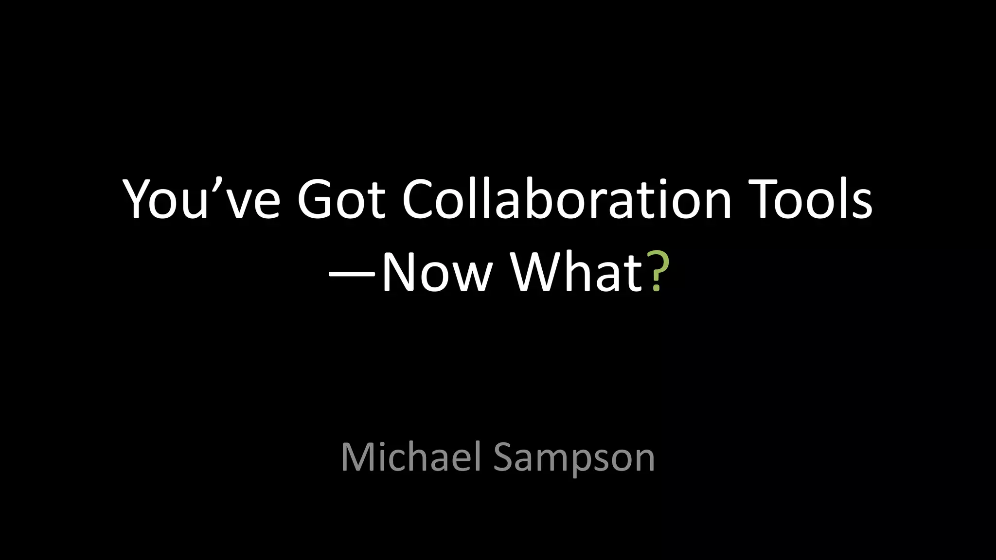 1) The document discusses the current state of collaboration tools, which are often implemented without proper governance, engagement of users, or efforts to drive adoption.