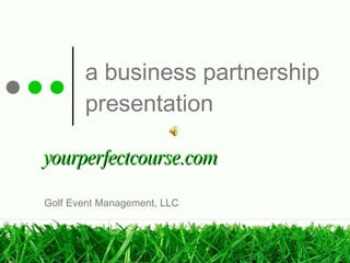 YourPerfectCourse.com connects clients looking to organize golf outings and events with multiple venues across the USA, simplifying the process of venue selection and coordination. The service eliminates the need for commissions or subscription fees, providing direct access to a wide network of qualified venues. Clients only need to complete an RFP form to receive tailored opportunities and support from venues interested in hosting their events.