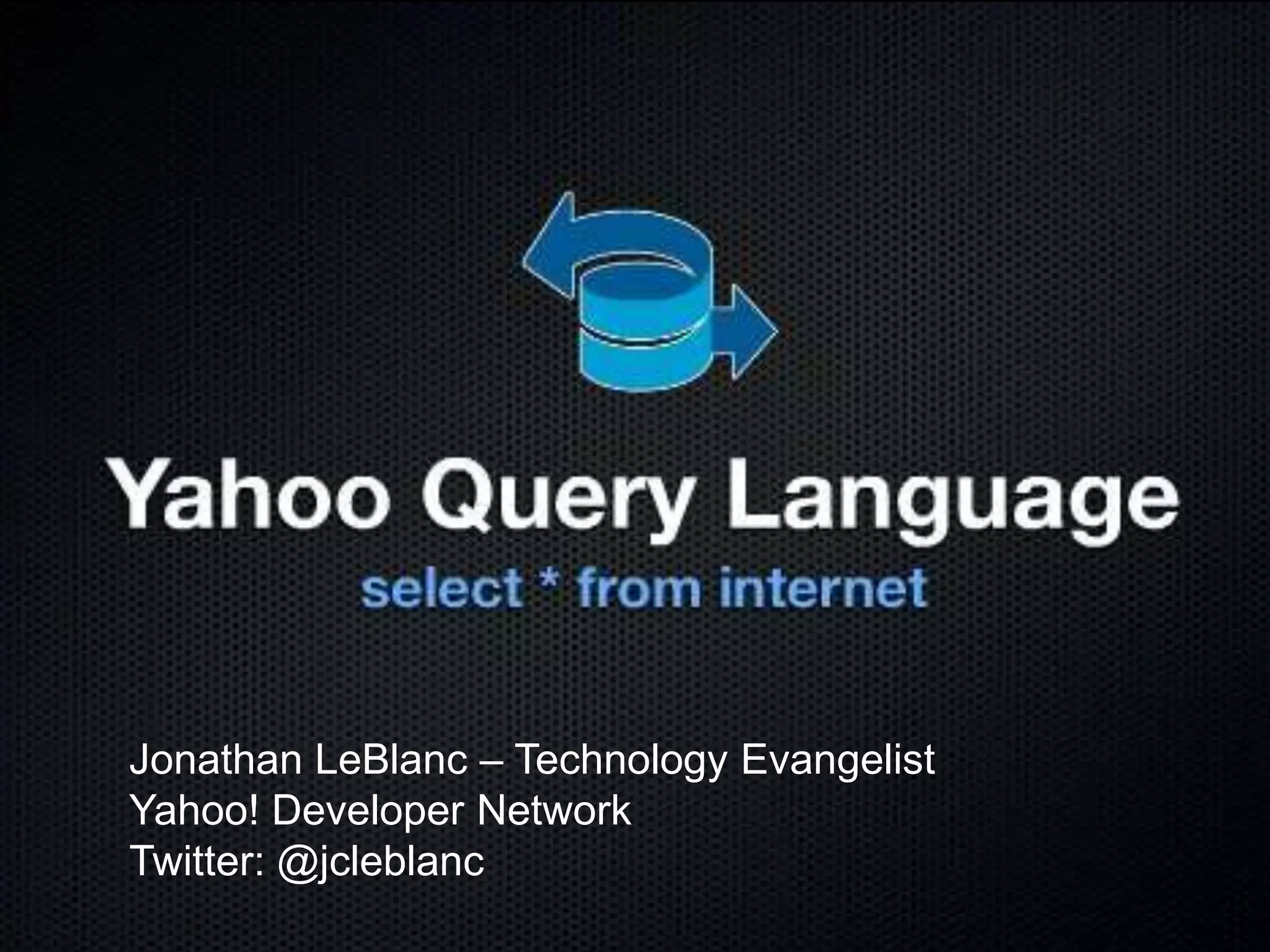 The document provides an overview of Yahoo's Query Language (YQL), including its query structure, commands for running queries, and examples for inserting, updating, and deleting data. It details available tables and how to create user aliases, as well as defining open data tables and extending them. Additionally, it emphasizes building applications faster and provides links to relevant documentation and resources.