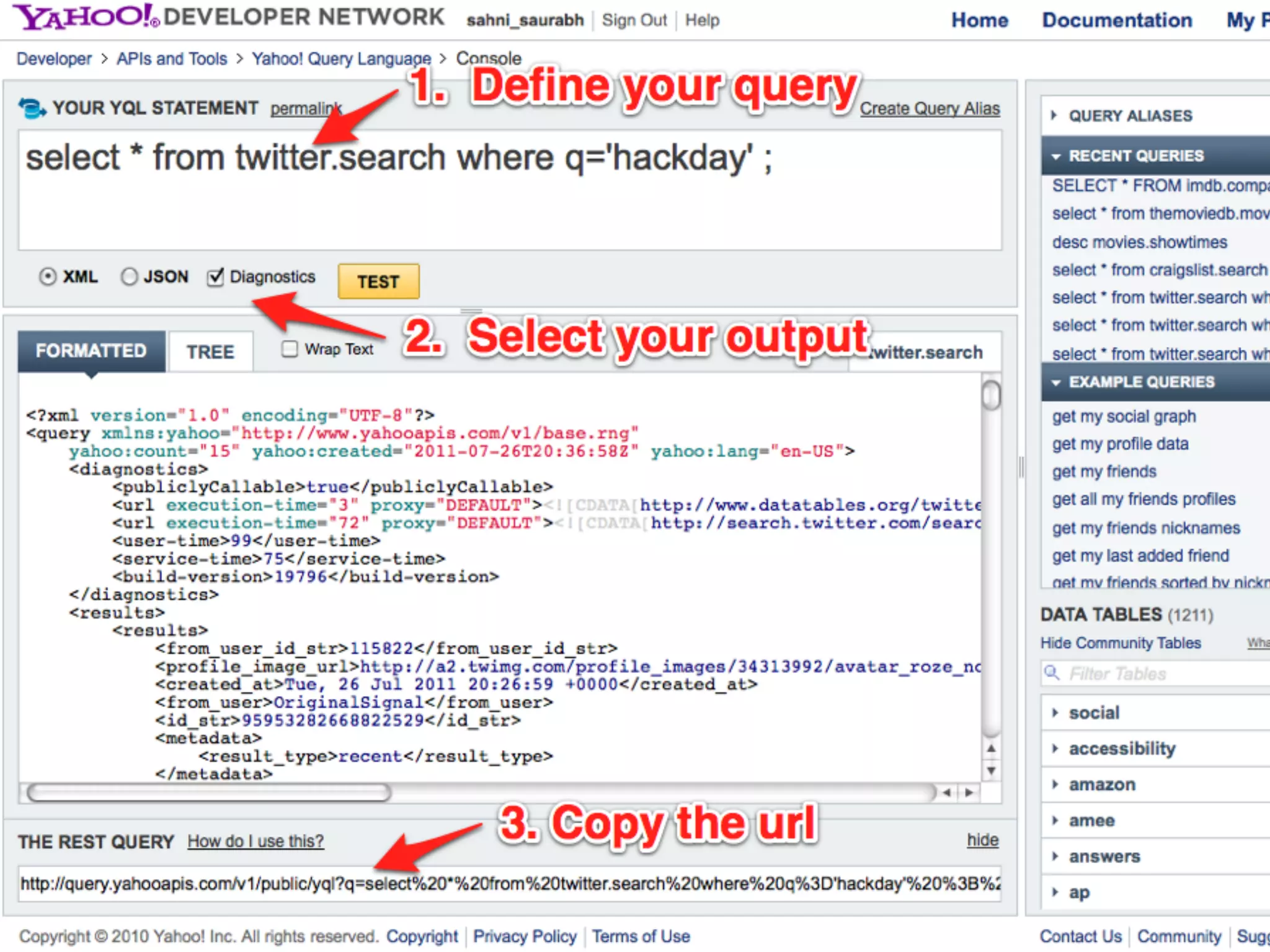 YQL allows users to easily access and manipulate data from web services and APIs by treating their data as rows in database tables. Users can select, filter, and manipulate data from services like Flickr, YouTube, Twitter and more using simple SQL-like queries. YQL also allows users to publish their own custom data tables for others to query. This makes it simple to build apps and prototypes by combining data from different sources.