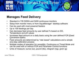 1. Can be used with YSI's 5200A and 5400 continuous water quality monitors or independently with most powered feeders.