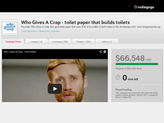 The document discusses crowdfunding strategies, emphasizing the importance of having a strong pitch, effective perks, and a well-planned marketing schedule for successful campaigns. It highlights the 'green bar effect,' explaining that higher goals do not necessarily lead to more funding, and underscores the need for constant promotion and engagement with backers. Additionally, resources and platforms for further assistance and insights on crowdfunding are provided.