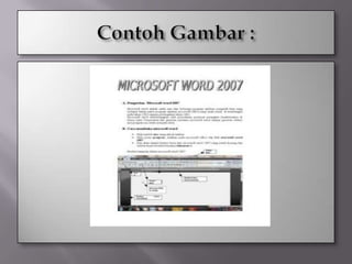 Microsoft Word adalah program pengolah kata yang dikembangkan oleh Microsoft sejak tahun 1983. Program ini memiliki fitur WYSIWYG dan merupakan program pertama yang dapat menampilkan format teks seperti tebal dan miring pada IBM PC. Word terus dikembangkan hingga menjadi bagian dari Microsoft Office.