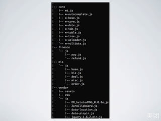 This document discusses YUI3 (Yahoo! User Interface Library 3). It describes how YUI3 uses combo loading to reduce the number of HTTP requests, how modules are added and used via the add() and use() methods, and how YUI3 implements object-oriented programming (OOP) principles. It also provides examples of how to define and load modules for a site application using YUI3 and PHP.