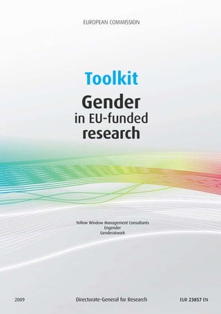 This document provides an introduction to integrating gender considerations into EU-funded research. It defines key terms like sex, gender, and gender bias. It outlines the European Commission's legal obligation to promote gender equality in research and its strategy to do so through FP7 projects. The document emphasizes that excellent research takes a gender-sensitive approach by encouraging equal participation and addressing gender in the research content and methodology. It provides guidance on integrating gender throughout the research cycle, from project design to dissemination of results.