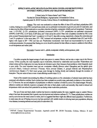 This study evaluated the effects of various treatments, including clear and black polyethylene mulches combined with floating row covers and microtunnels, on the growth and yield of muskmelon while monitoring pest populations. Results indicated that the combination of clear polyethylene mulch and floating row covers significantly increased soil temperature and marketable fruit yield while effectively reducing aphid and whitefly populations. It was concluded that floating row covers should be prioritized for managing insect pests and enhancing muskmelon production in tropical conditions.