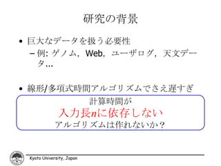 • 線形/多項式時間アルゴリズムでさえ遅すぎ
