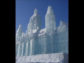 The Alaska Ice Festival was presented by Henry. It was very cold, 36 degrees below zero, on the past weekend of 10/1/2009. In such frigid temperatures, it is no wonder that they can make beautiful ice sculptures for the festival.