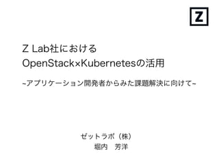Z Lab社におけるOpenStack × Kubernetesの活用 〜アプリケーション開発者からみた課題解決 - OpenStack最新情報セミナー(2016年7月)