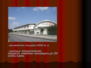 Компания Zaccariotto, расположенная в Италии на площади 30000 кв. м, производит до 250 кухонь в день, придерживаясь высоких стандартов качества и используя экологически чистые материалы. В коллекции представлены разнообразные модульные элементы и нестандартные композиции, разработанные известными архитекторами, что позволяет удовлетворить любые требования клиентов. Фабрика также предлагает гибкие условия и скидки на выставочные образцы.