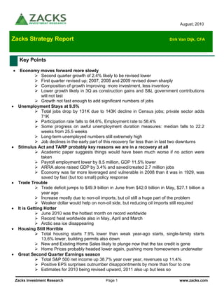 - Overall the economy is growing but at a slowing pace, and continued stimulus will be needed to boost job growth.