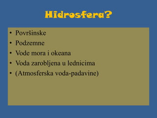 vrste koje se nalaze u vodi mogu da uginu, a samim tim se