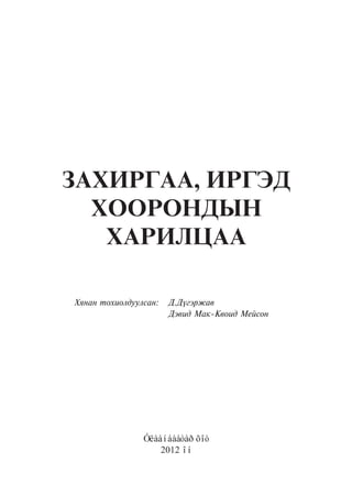 Èðãýäèéí ýðõ ç¿éí õºòº÷ 4.3. Çàõèðãààíû àëáàäëàãà Õóóëü çºð÷ñºí, òºð, íèéãýì, èðãýäýä õîð óðøèã ó÷ðóóëñàí íºõöºëä àëáàäëàãà õýðýãëýõ ¿¿ðãèéã òºðèéí ýðõ á¿õèé àëáàí òóøààëòàí, àëáàí õààã÷èä õóóëèàð õ¿ëýýëãýñýí áàéäàã. Àëáàäëàãà íü õ¿íèé ýðõèéã õÿçãààðëàæ, õ¿ñýë çîðèãò øóóä òóëãàäàã òóë õóóëèíä íàðèéí çîõèöóóëæ ºãñºí áàéäàã. Çàõèðãààíû àëáàäëàãûã çºð÷èë ãàðñàí áîëîí ãàðàõààñ íü ºìíº óðüä÷èëàí ñýðãèéëæ çºð÷èë ¿éëäýõýýð áýëòãýæ áàéãàà, ýñâýë çºð÷èë ¿éëäýæ áàéõàä íü òàñëàí çîãñîîõ çîðèëãîîð õýðýãëýäýã. Æèøýý íü: çºð÷èë ãàðãàñàí ýòãýýäèéí áèåä áîëîí ýä ç¿éëä íýãæëýã, ¿çëýã õèéõ, ýä ç¿éë, áàðèìò áè÷èã ò¿ð õóðààõ, àâòîìàøèí æóðàìëàõ, à÷èõ ãýõ ìýò. Íèéòëýã õýðýãëýãääýã çàðèì àëáàäëàãûí àðãà õýìæýýã äîð äýëãýð¿¿ëæ àâ÷ ¿çüå. 4.3.1. Çàõèðãààíû æóðìààð àëáàäàí ñààòóóëàõ Ǻð÷ëèéã òàñëàí çîãñîîõ, çºð÷ëèéí òóõàé òýìäýãëýë ¿éëäýõ ¿åä øààðäëàãàòàé ãýæ ¿çâýë çºð÷èë ãàðãàñàí ýòãýýäèéã ñóìûí Çàñàã äàðãà, öàãäààãèéí áàéãóóëëàãûí ýðõ á¿õèé àæèëòàí, õèëèéí òºëººëºã÷, ò¿¿íèé îðëîã÷, òóñëàõ àëáàäàí ñààòóóëæ áîëíî. Ýíý íü çºð÷èë ãàðãàñàí ýòãýýäèéí