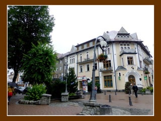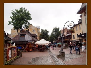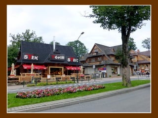 Zakopane is a popular mountain resort town located in southern Poland near the Tatra Mountains. The town is known for its wooden architecture, skiing opportunities, and as an inspiration location for many Polish artists and writers. Zakopane has developed significantly as a tourist destination since the 19th century.