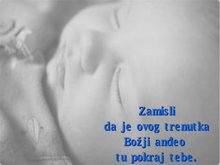 Dokument opisuje meditativni proces oslobađanja od emocionalnih tereta kroz zamišljanje božjeg anđela kao posrednika. Poziva čitatelja da preda svoje brige Bogu i da se fokusira na pozitivne aspekte svog života. Završava naglašavanjem zahvalnosti i slanjem blagoslova drugima, uključujući i one koji se bore sa svojim unutarnjim osjećajima.