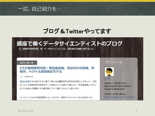 「理想」と「現実」の折り合いをうまくつけて、データ分析で価値 を発揮していくには? 2013/11/28 14