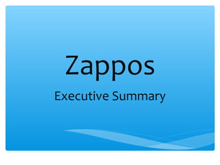 Zappos is an online retailer founded in 1999 that specializes in shoes, clothing and accessories. It grew rapidly due to its superior customer service culture and emphasis on fast shipping, free returns and friendly customer support. In 2009, Amazon acquired Zappos for $1.2 billion but allows it to operate independently. Zappos continues to focus on customer satisfaction through its unique company culture and wide product selection. It remains a leader in online shoe and apparel sales.