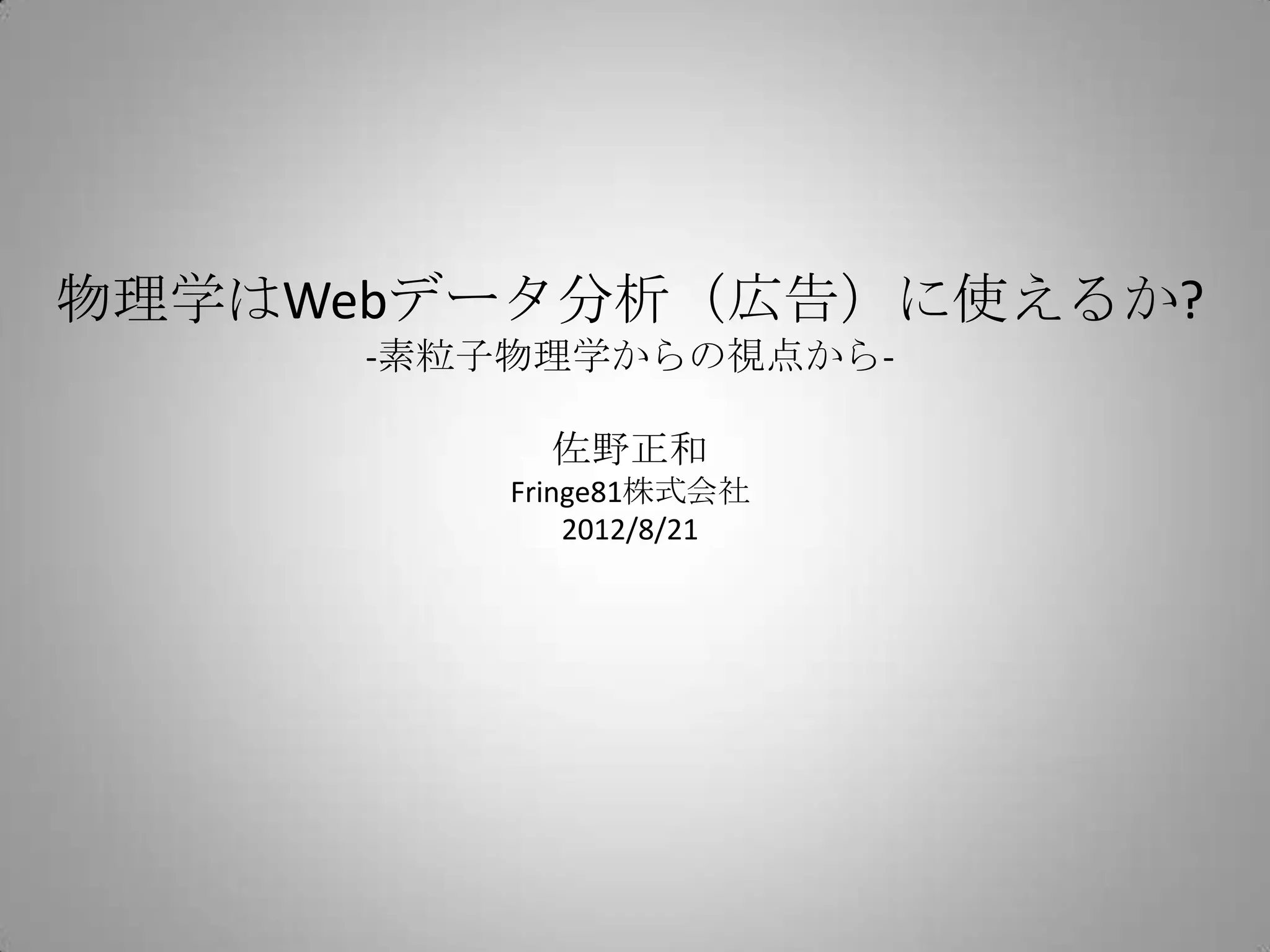 Zansa第9回の発表資料です。 「物理学はWebデータ分析に使えるか」 http://zansa.info/materials-9.html Zansaは学生が主催する統計・データマイニングの勉強会です。 http://zansa.info/schedule.html