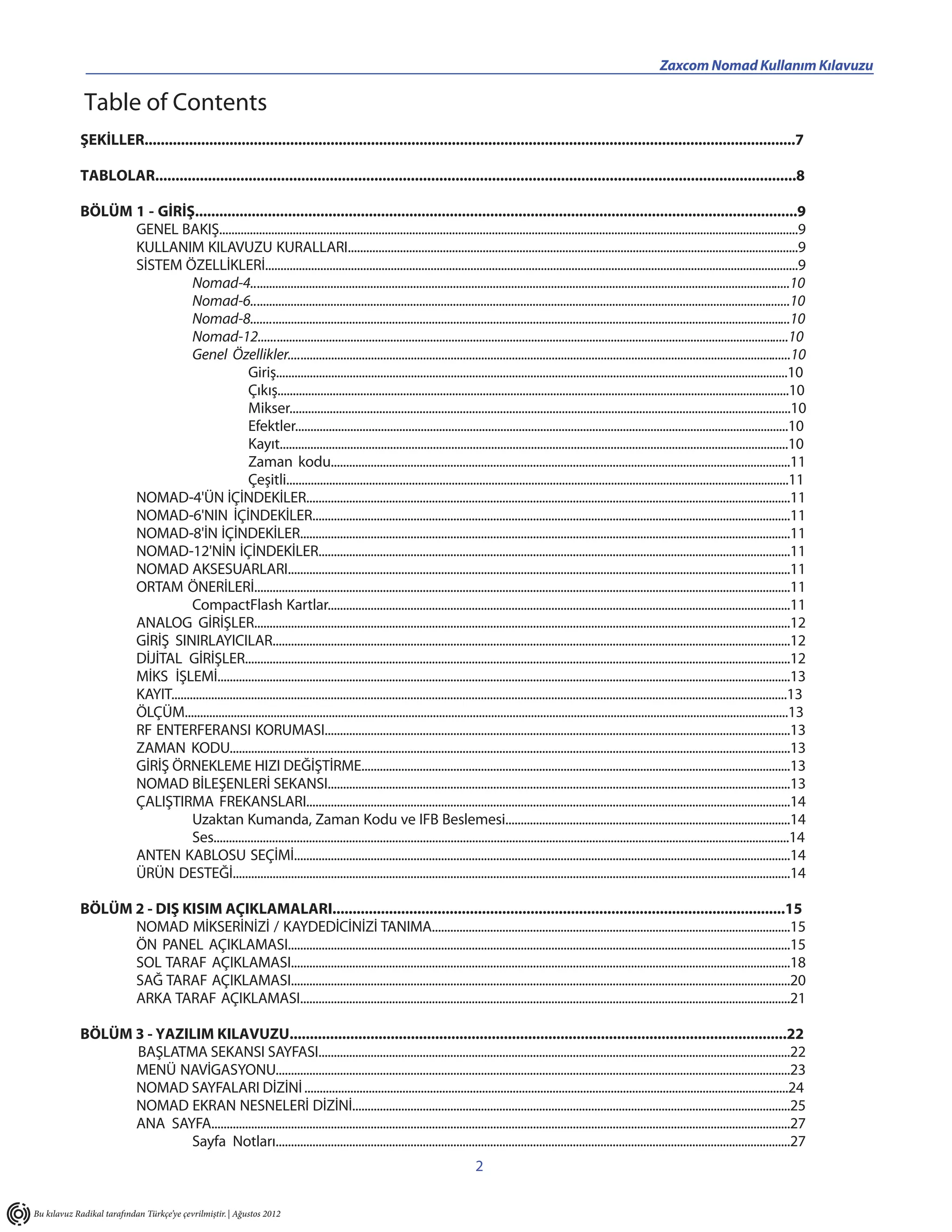 NOMAD-6'NIN İÇİNDEKİLER............................................................................................................................................................11