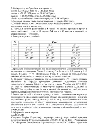 Стрілецькокутського ОЗЗСО І-ІІІ ступенів на 2021/2022 навчальний рік.