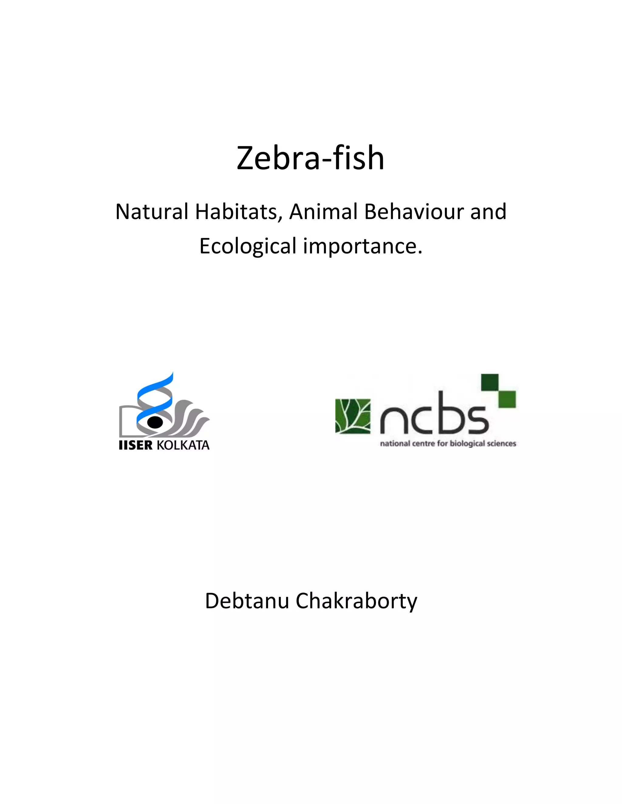 Zebrafish are commonly used as a model organism in research due to their low cost, small size, rapid development and reproduction. They naturally live in schools for protection against predators. School size can vary depending on environmental conditions, with fish preferring larger or more active schools. Both males and females establish dominance hierarchies through aggressive behaviors like chasing and biting. Males court females through behaviors like nudging and leading them to spawn sites, where the male aligns to induce egg-laying.