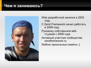 Документ описывает процесс интеграции Doctrine ORM с Zend Framework, включая создание и настройку моделей, генерацию миграций и работу с командной строкой Doctrine CLI. Автор делится скриптами и настройками для подключения и конфигурации Doctrine в проекте, а также описывает методы работы с моделями и миграциями баз данных. Дополнительно рассматриваются примеры создания схем и моделей пользователей, а также демонстрация функции авторизации через адаптер ZendX_Doctrine.