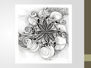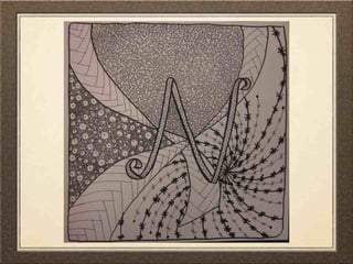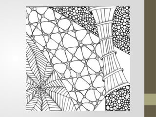 #7 What movement/rhythm do you see in this zentangle? (Bottom left, feel like it goes up and down lending dimension.) Pattern in pebbles creates rhythm.