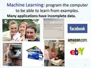 This document outlines a dissertation defense for a Ph.D. in machine learning with incomplete information. The defense covers machine learning concepts, applications, and the student's work in active learning and budgeted learning. For active learning, the student's algorithms focus on selecting labelers and estimating ground truths rather than just selecting instances. For budgeted learning, the student develops algorithms that exploit dependencies between features in Bayesian networks to learn more accurate classifiers within a given budget.