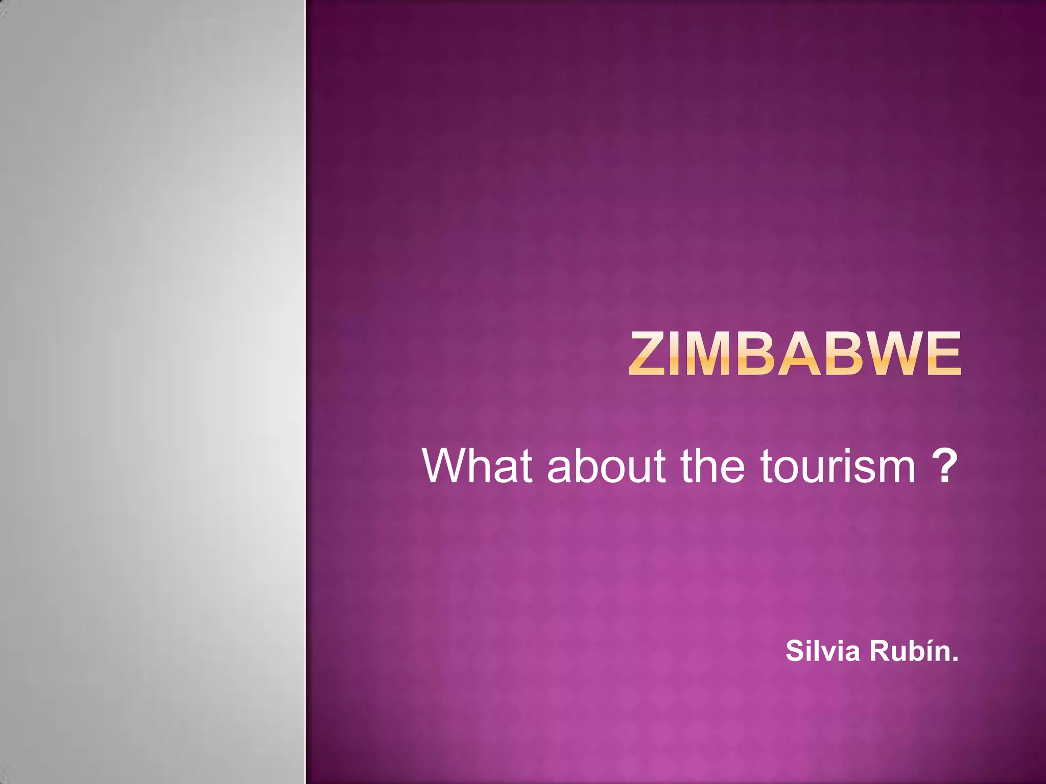 The document discusses Zimbabwe's tourism, focusing on Victoria Falls, one of the Seven Natural Wonders of the World, first seen by explorer David Livingstone in 1885. It details the geographical features, seasonal changes, and surrounding national parks, along with the diverse wildlife in the area. Additionally, it includes references to archaeological findings and the conservation challenges faced in the region.