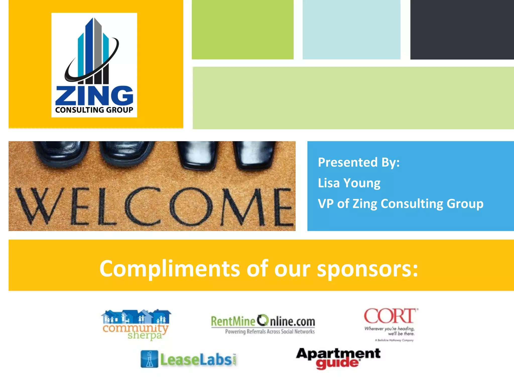 Lisa Young, VP of Zing Consulting Group, gave a presentation on successfully selling and marketing a business. The presentation covered key aspects of value-added selling such as focusing on customer benefits rather than price and differentiating your product or service from competitors. It also provided tips on preparing for and handling sales objections, staying motivated through goal-setting and accountability, and leveraging word-of-mouth marketing through referrals and reviews online.