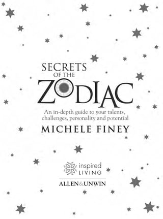This document provides an introduction to the astrological concepts explored in the book Secrets of the Zodiac. It discusses how astrology began thousands of years ago and has developed different systems around the world. While astronomy studies the science, astrology perceives all things as interconnected and that by understanding how the universe operates we can learn about ourselves, as the macrocosm reflects the microcosm. Modern astrology incorporates psychological concepts from Jung. The birth chart captures the potential of a moment, but we and the charts are not static - astrologers study planetary cycles correlating to life stages and individual development.